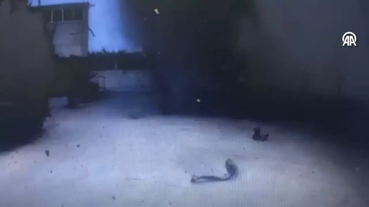 Görüntülerde, yaşanan şiddetli patlamanın ardından bazı metal parçaların etrafa fırlaması yer alıyor. Patlamadan saniyeler önce ise bölgeden 3 kadın işçinin geçtiği görülüyor.