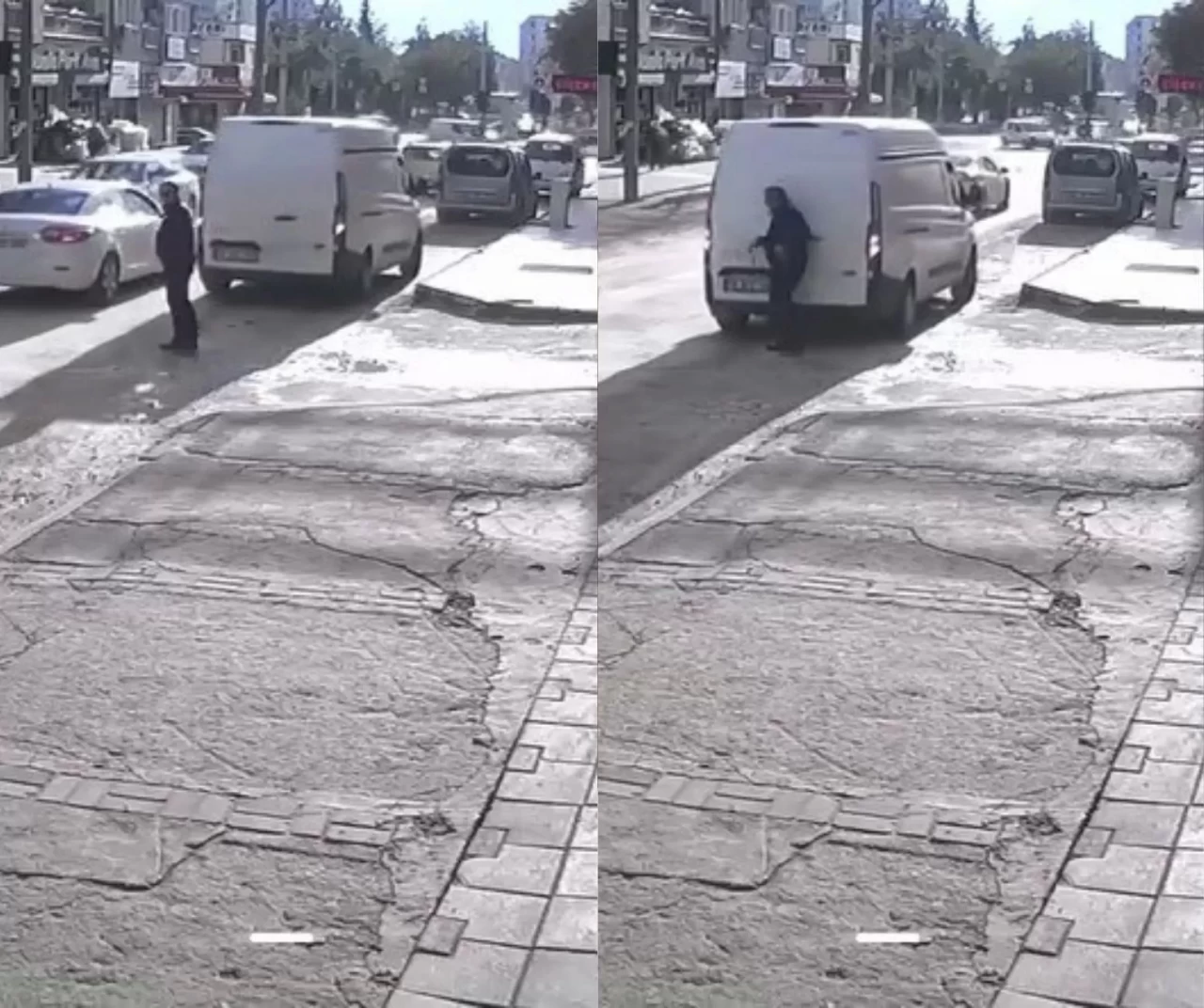 Yaşanan kaza, çevredeki bir iş yerinin güvenlik kamerasına saniye saniye yansıdı. Görüntülerde, sürücünün geri manevra yaptığı sırada arkasındaki adama çarptığı, adamın yere düştüğü ve sürücünün kısa sürede frene bastığı anlar açıkça görülüyor.