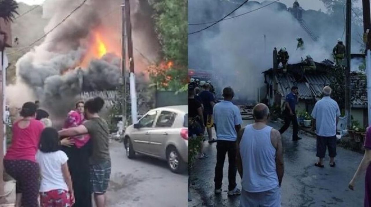 İstanbul Sarıyer'de alevlere teslim olan gecekondu yandı. Kiracı evdeki kedisini bulmak için uzun süre çaba gösterdi. Öte yandan yangın cep telefonu ile görüntülendi.