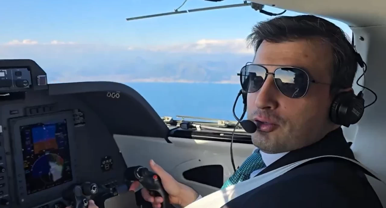 Uçuşa ilişkin videoyu X hesabından paylaşan Bayraktar, "Cenova'daki Piaggio Aerospace'in pistine Piaggio P180 uçağıyla ilk inişimiz." ifadesini kullandı.