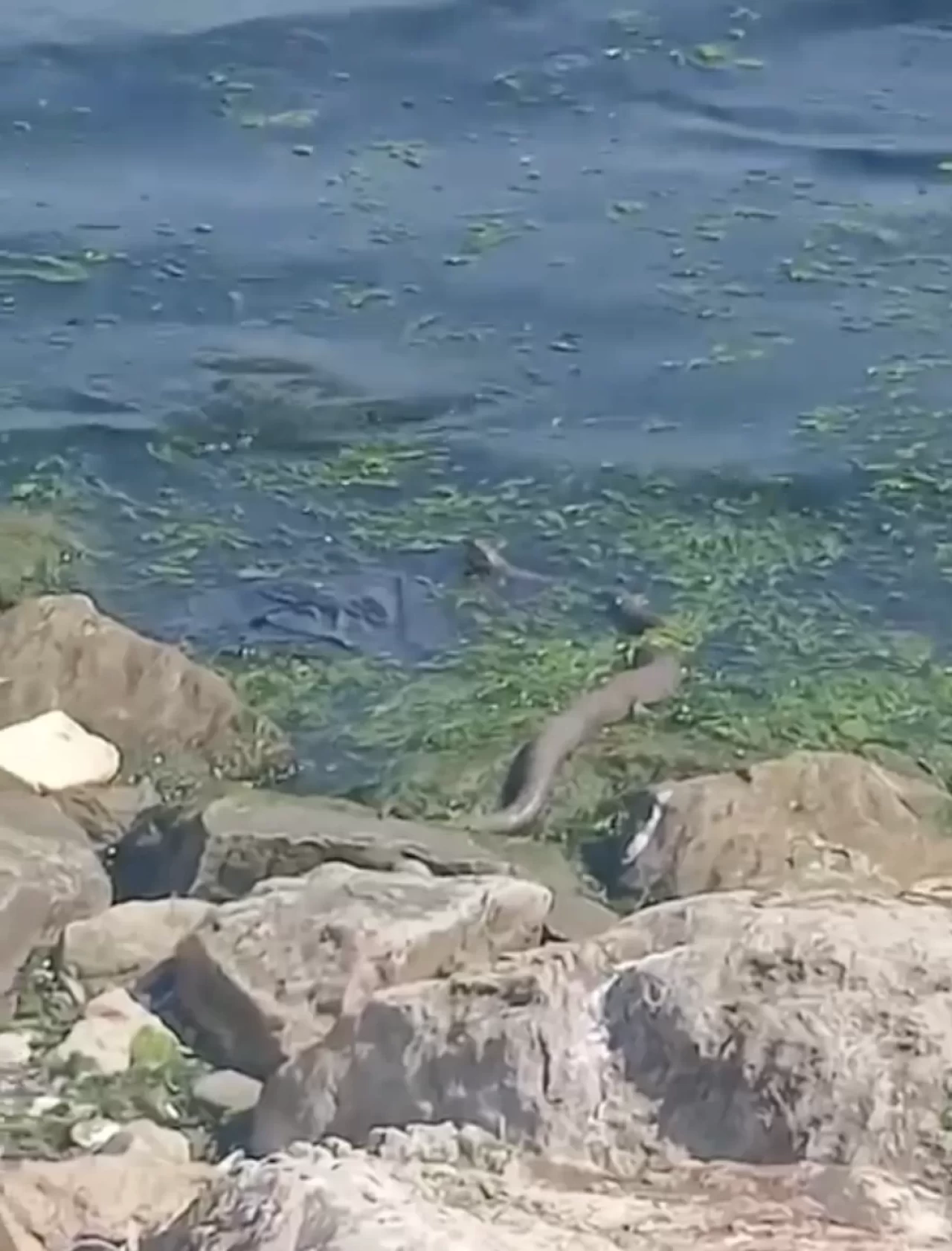 Çocukların, "Hareket ediyor" diye bağırdığı duyulurken, denizin içindeki yılanın daha öncede aynı gölgede görüldüğü öğrenildi.