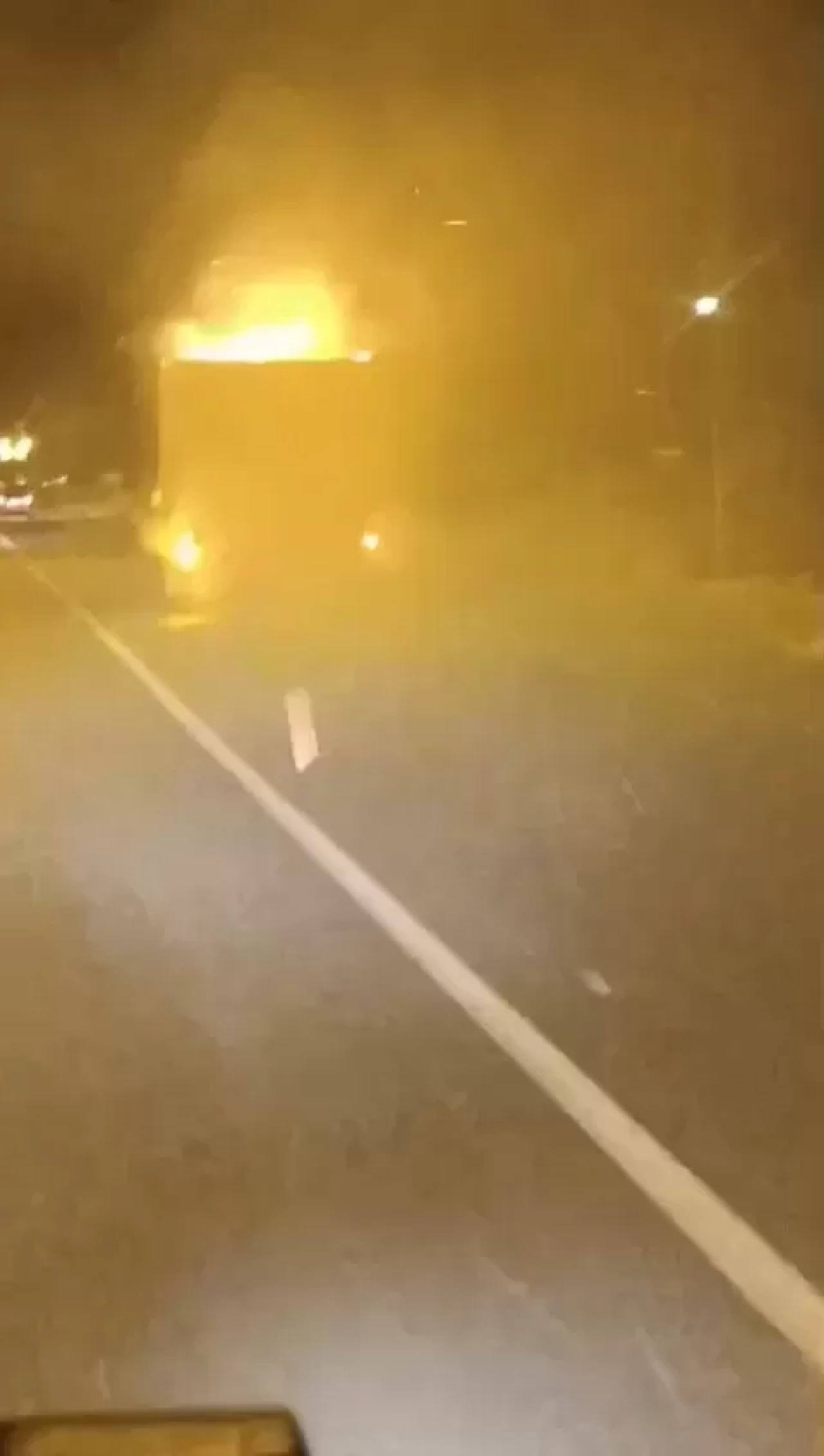 Alevlere rağmen kamyonun trafikte yol alması şaşkınlıkla karşılandı.