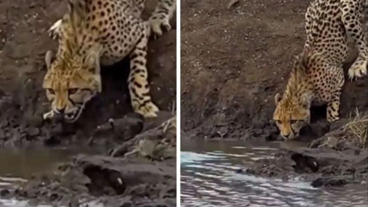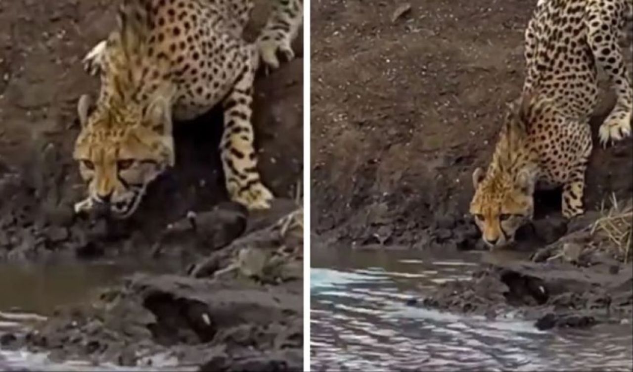 Hayatta kalmanın zor olduğu vahşi doğada kaydedilen bir görüntü tüyleri diken diken etti. Su içmek için su birikintisine gelen bir çitanın su içtiği esnada timsah tarafından avlandığı anlar saniye saniye görüntülendi.