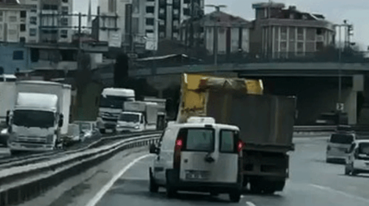 İstanbul'un Sultangazi ilçesinde seyir halindeki hafriyat kamyonu şoförü ile hafif ticari aracın sürücüsü, yol verme tartışmasına girdi. Sürücülerin trafiği tehlikeye soktuğu anlar cep telefonu kamerasına saniye saniye yansıdı.