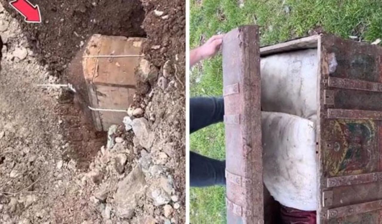 Eski dönemde yaşamış genç bir kıza ait olduğu düşünülen çeyiz sandığının içinden silah, kömürlü ütü ve çeşitli takılar çıktı. Kısa sürede binlerce kişi tarafından izlenen videonun altına "Çeyiz bu", "Osmanlı'dan kalma çeyiz sandığı", "Kim bilir ne hayallerle yapılmıştı o sandık" şeklinde yorumlar yapıldı.