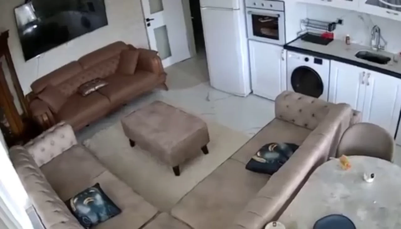 Van’ın Tuşba ilçesinde meydana gelen 5.2 büyüklüğündeki deprem sırasında yaşanan sarsıntı, bir evin güvenlik kamerası tarafından anbean kaydedildi.