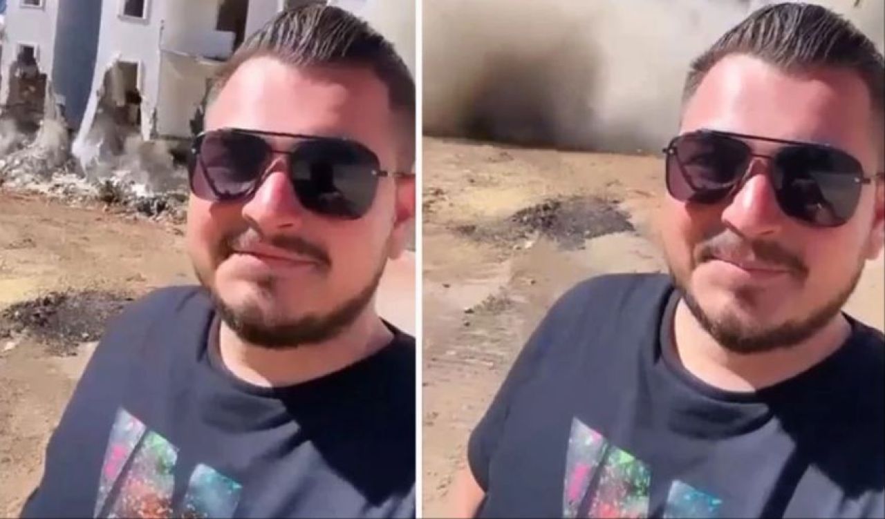 6 Şubat'ta meydana gelen Kahramanmaraş merkezli yıkıcı depremlerden etkilenen Elazığ'da, yıkımı yapılan ağır hasarlı binanın yanından geçen vatandaş, yüksek sesle "in aşağı" dedi. Vatandaşın bağırmasının ardından 5 katlı bina bir anda yerle bir oldu.