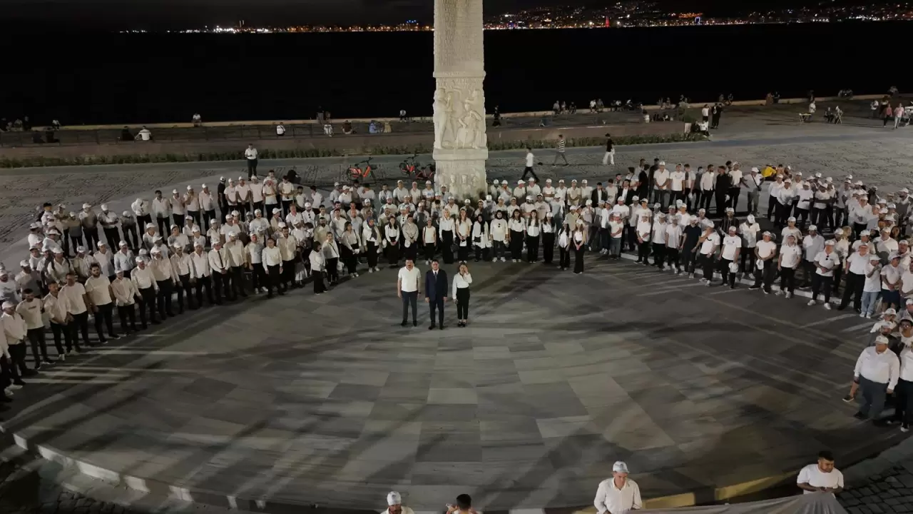 Yazıya Solotürk uçuşu ve vatandaşların yoğun ilgisi eşlik etti. Sonrasında İzmir’in kalbi Gündoğdu Meydanı’nda Ülkücü yemini gerçekleştirildi.