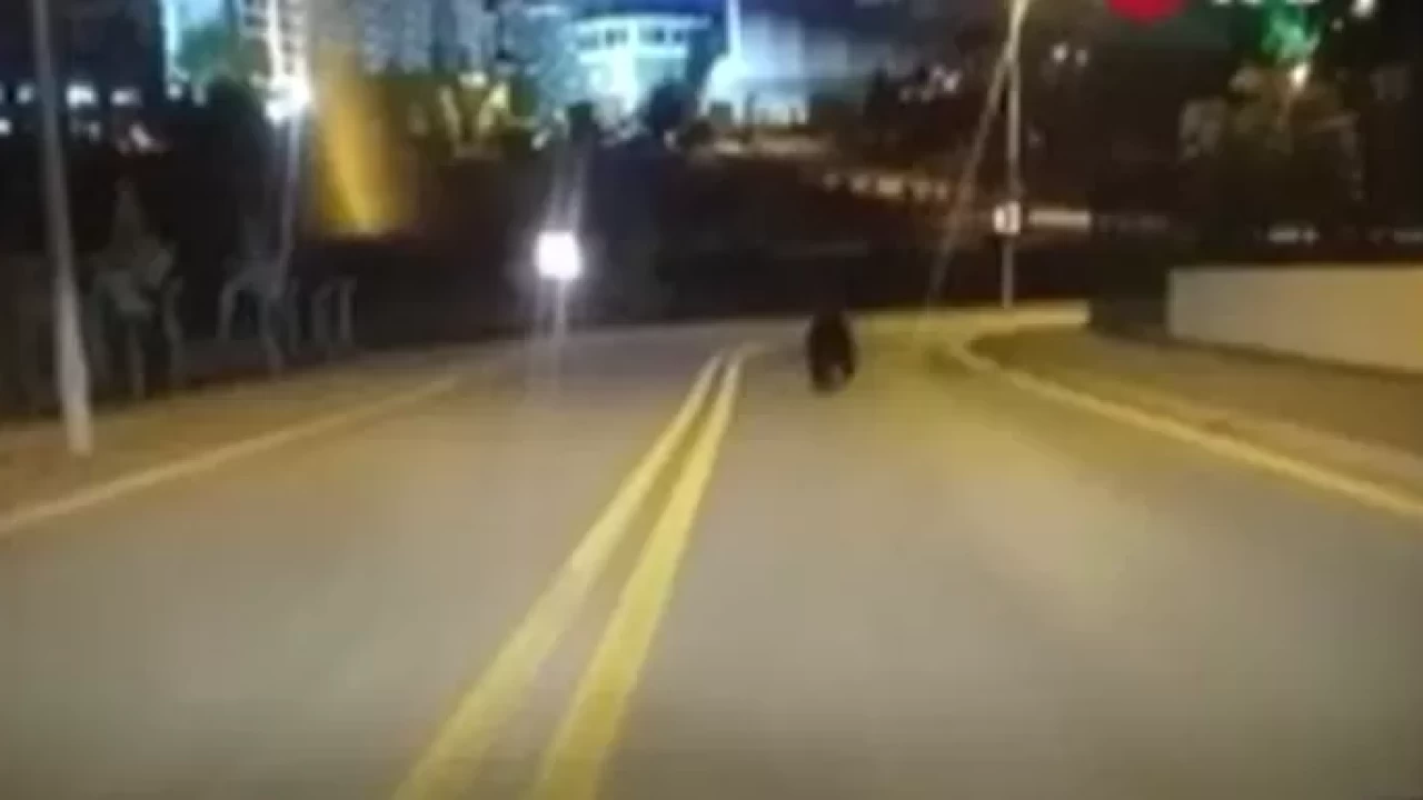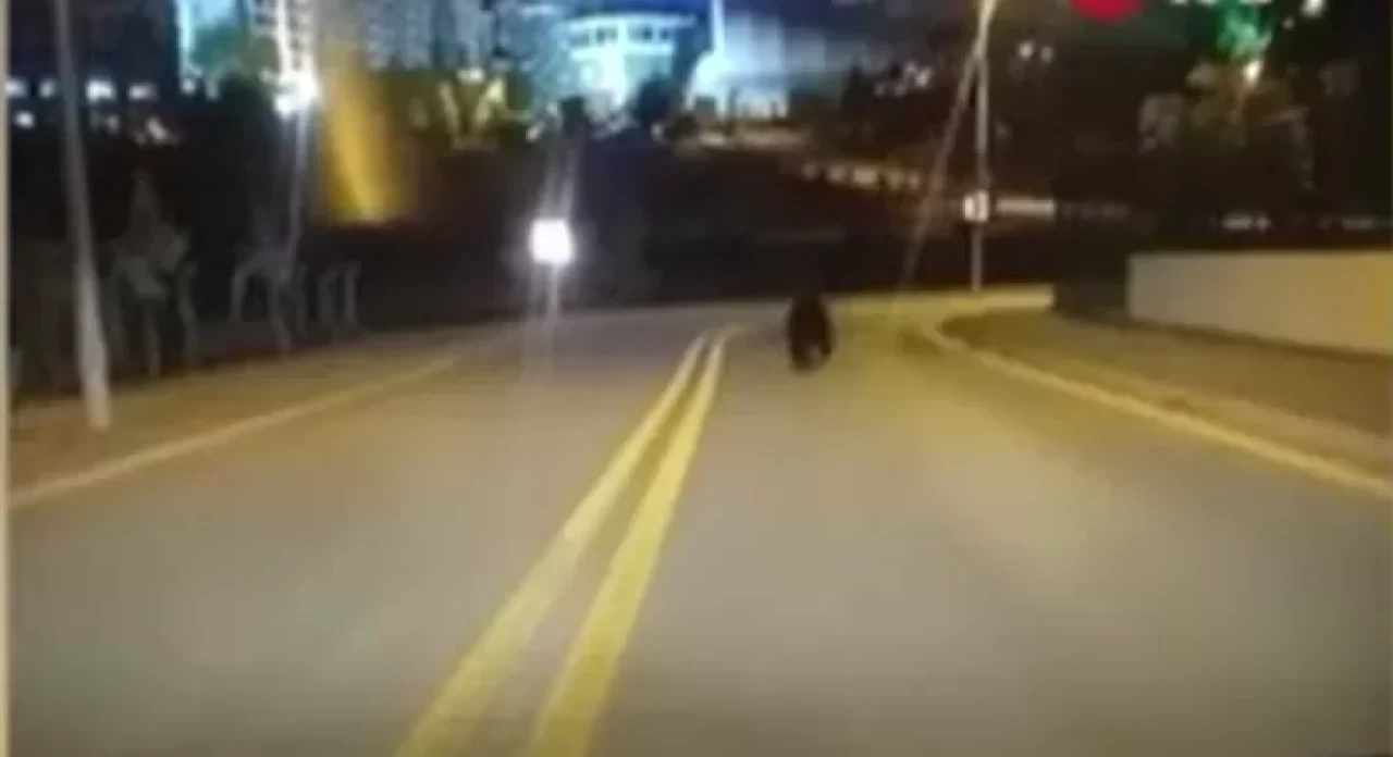 Sokakta gezen ayı bir vatandaşın cep telefonu kamerasında yansıdı.