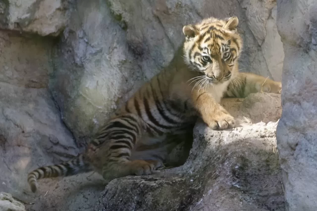 Almanya’nın başkenti Berlin’de bulunan Tierpark Hayvanat Bahçesi’nde, 2 Ocak’ta dünyaya gelen iki buçuk aylık Sumatra kaplanı “Lilly”, düzenlenen resmi isim verme etkinliğinin ardından görüntülendi.