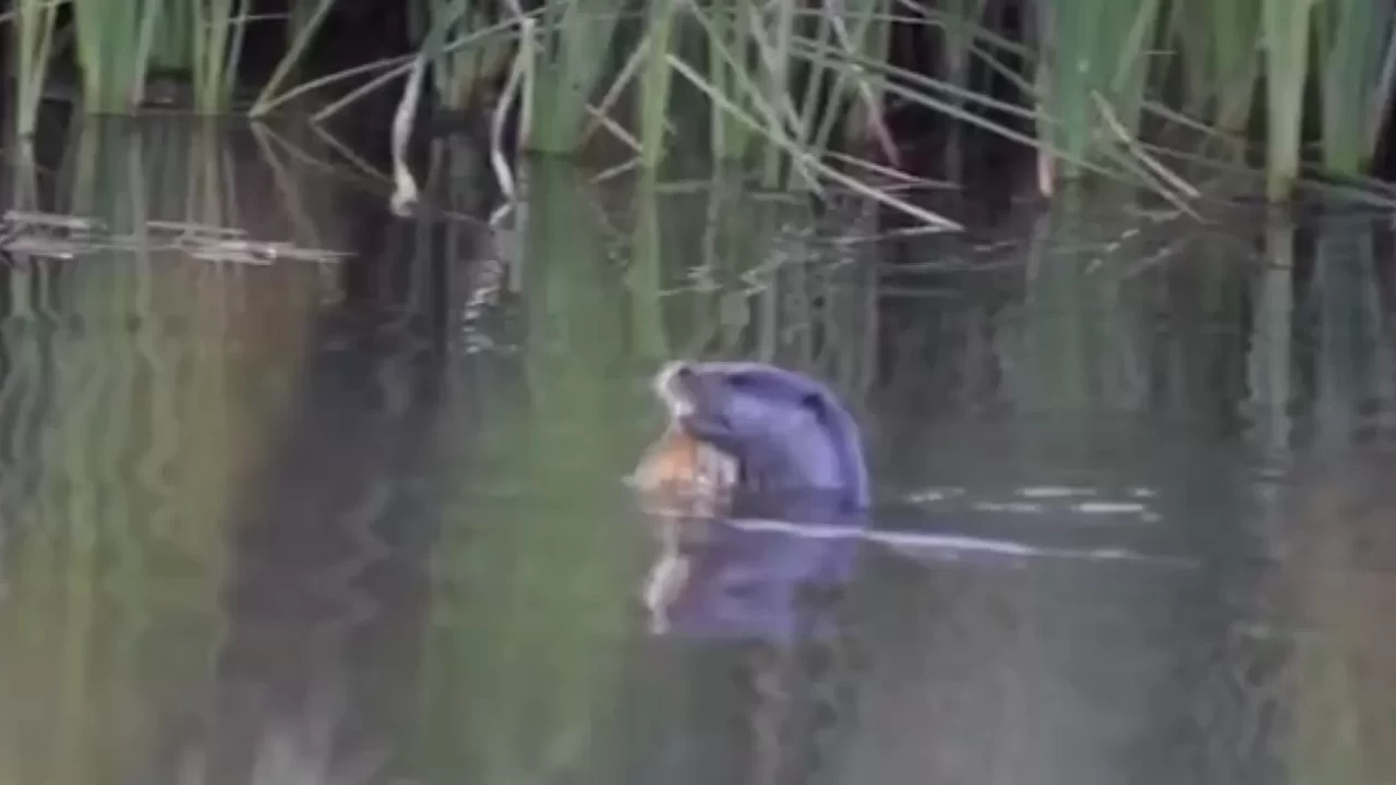 Görüntüde, su samurunun, birçok balık türünün yaşadığı çayda avlandığı anlar yer aldı.