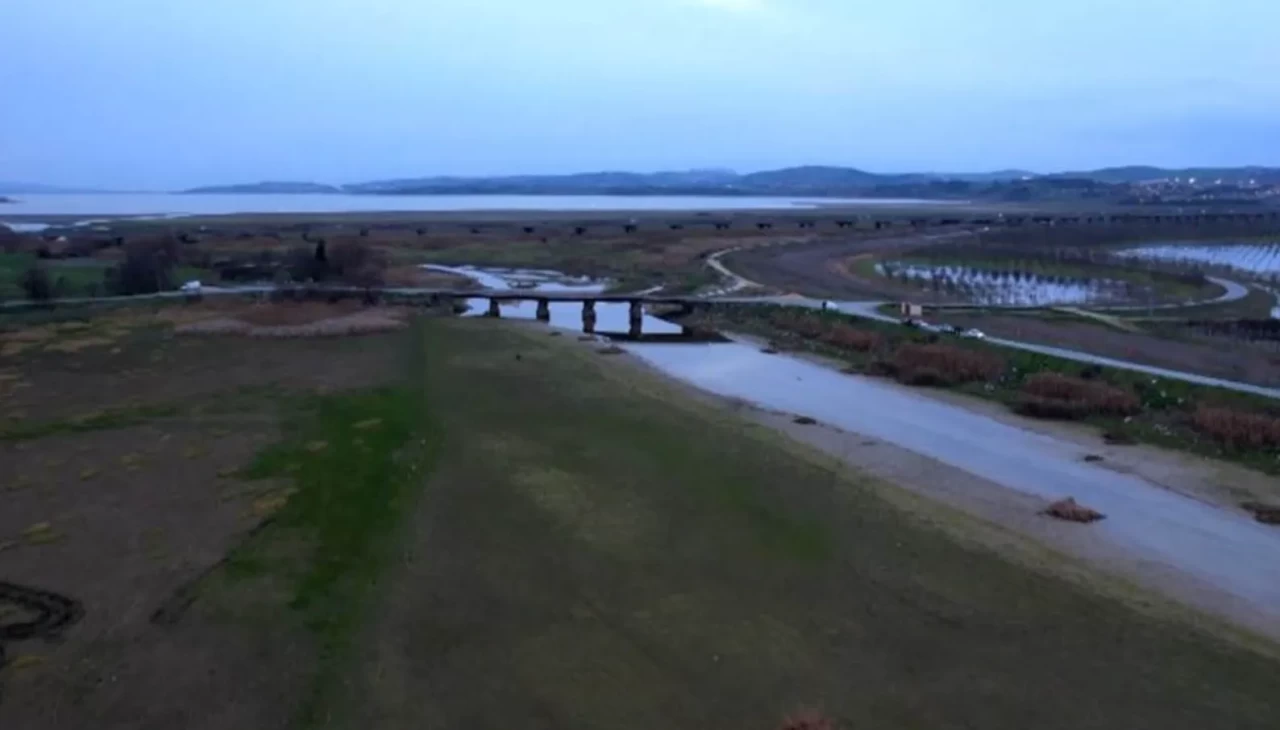 Drone ile havadan yapılan çekimlerde, Büyükçekmece Gölü’nün birçok noktasında suların metrelerce çekildiği ve geniş alanlarda göl tabanının ortaya çıktığı kaydedildi.