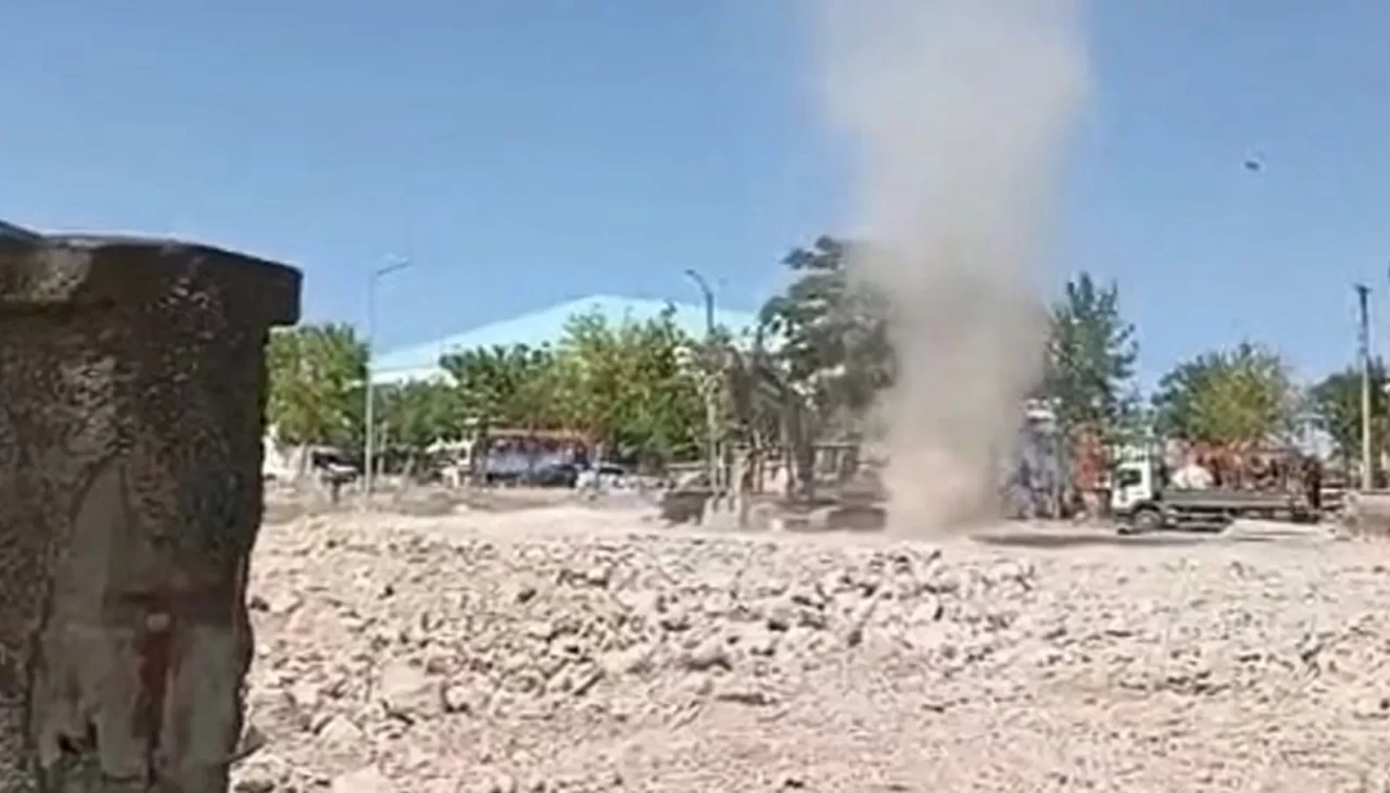 Elazığ’da rüzgarın etkisiyle çıkan mini hortumu çeken çocuğun tepkisi görenleri gülümsetti.