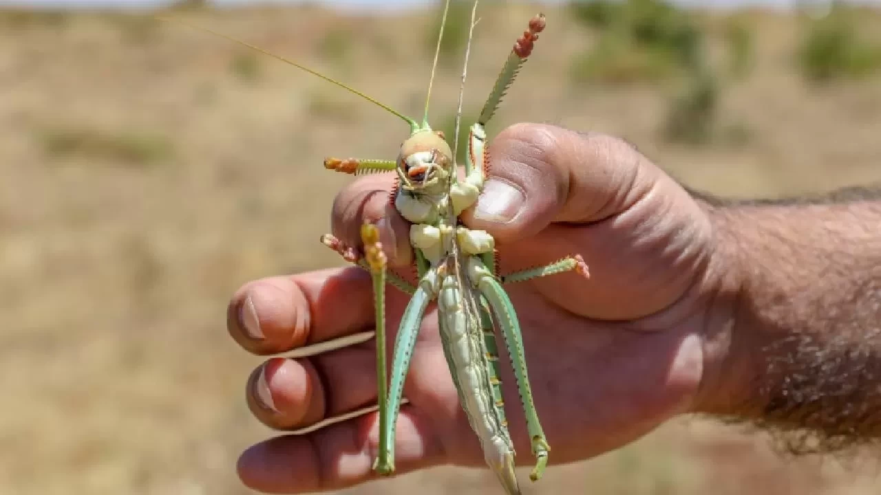 Diyarbakır'ın Silvan ilçesinde ortaya çıkan dev etçil çekirge, görenleri hayretler içerisinde bıraktı.