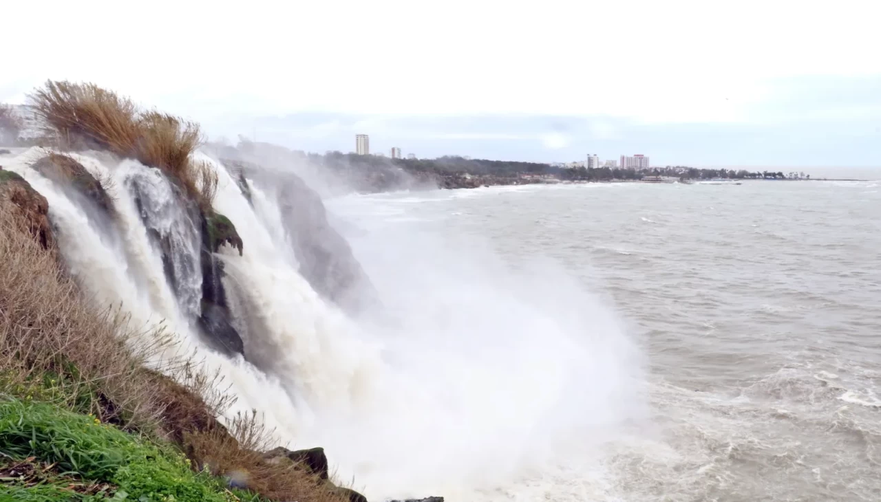 Son iki haftadır aralıklarla devam eden yağışların ardından Düden Şelalesi’nin denizle buluştuğu noktada dikkat çeken manzaralar ortaya çıktı.