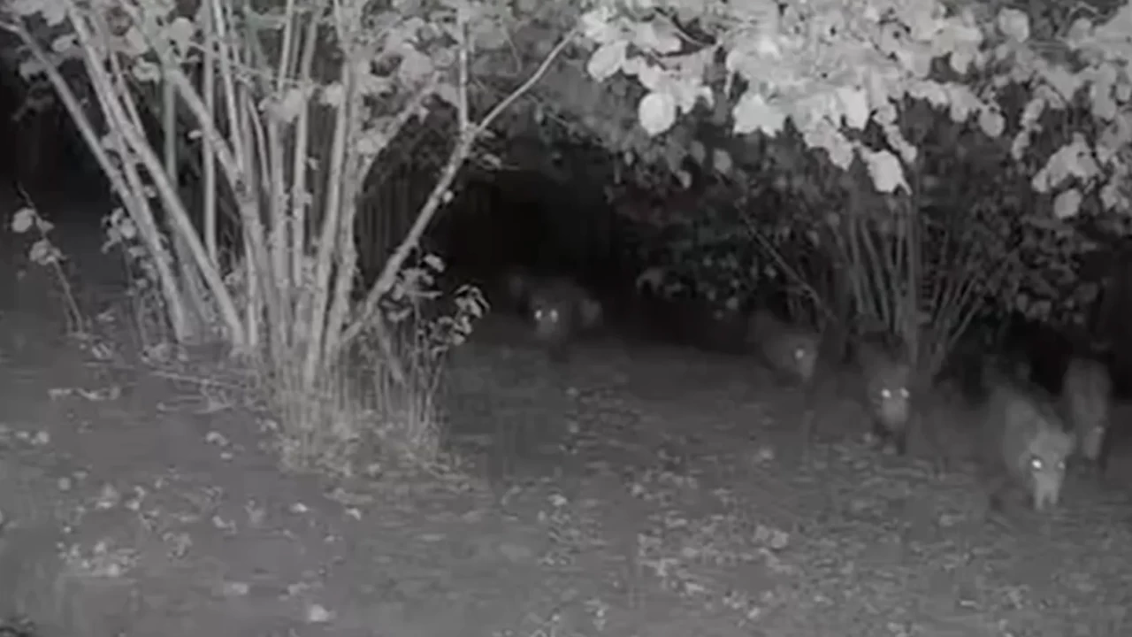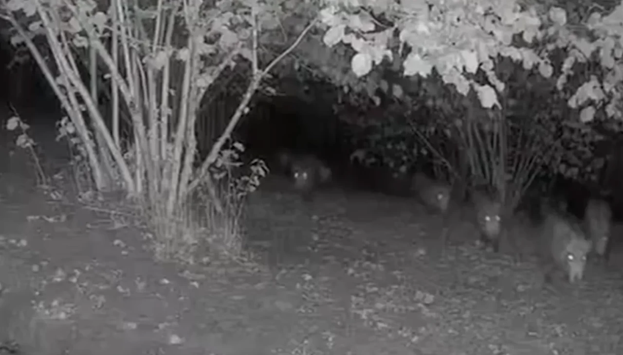 Düzce’nin Yığılca ilçesinde bir evin bahçesine giren ayı ve domuz sürüsü, güvenlik kamerası tarafından kaydedildi.