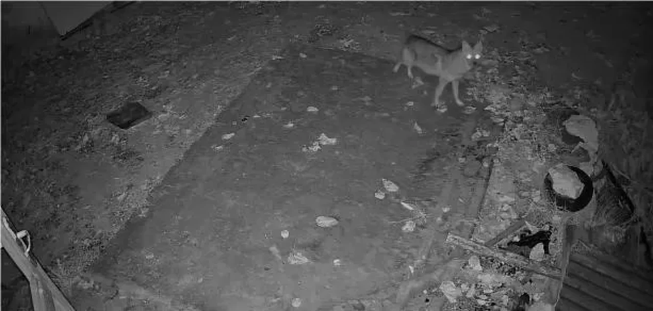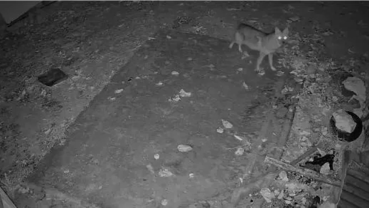 Çakalın yiyecek araması güvenlik kameralarına yakalandı.