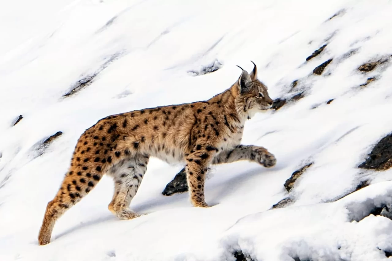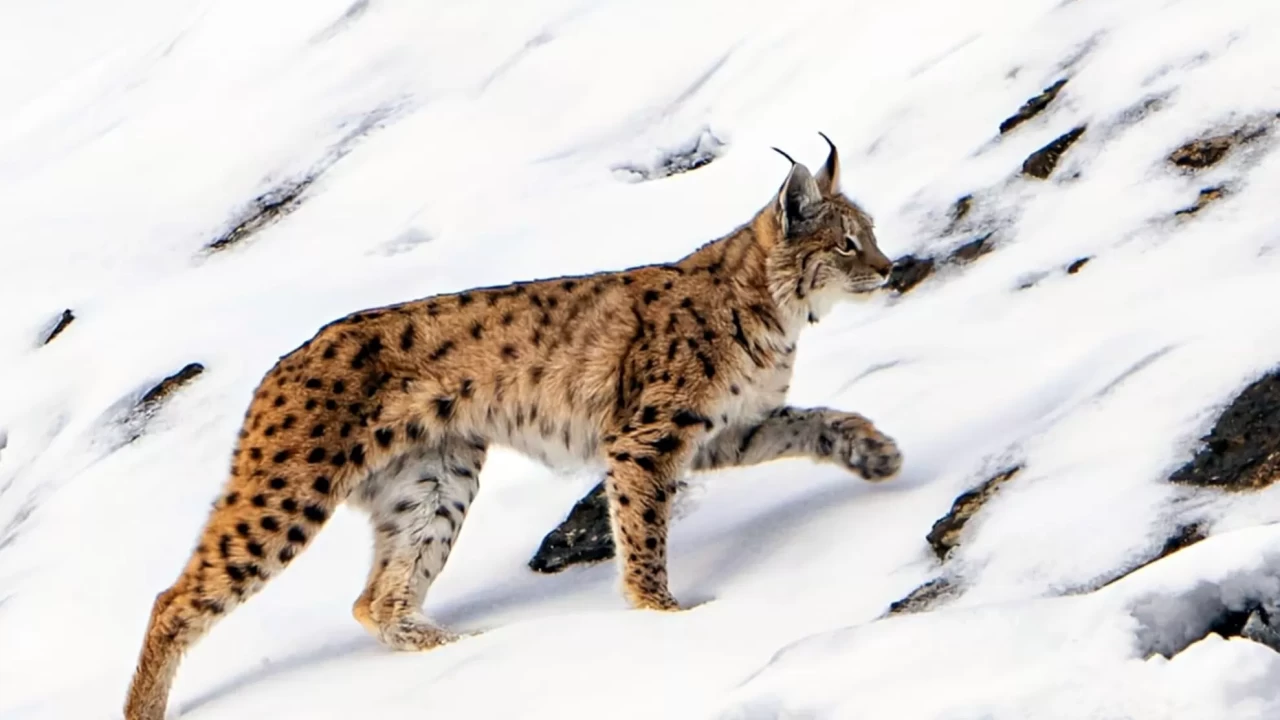 Vaşağın yiyecek aradığı anlar cep telefonu ile görüntülendi.
