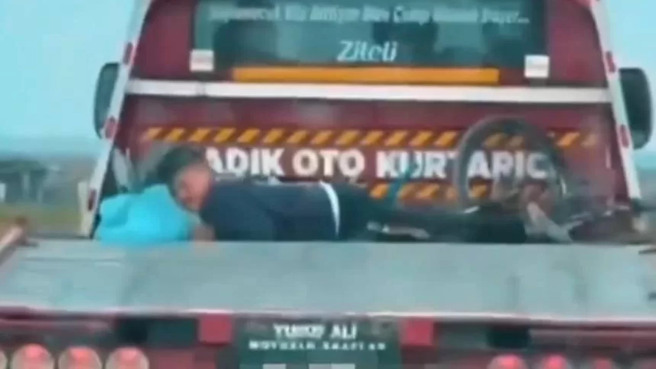 Görüntülerde küçük çocuğun hiçbir güvenlik önlemi olmaksızın çekici kasasında yolculuk etmesi yürekleri de ağza getirdi.