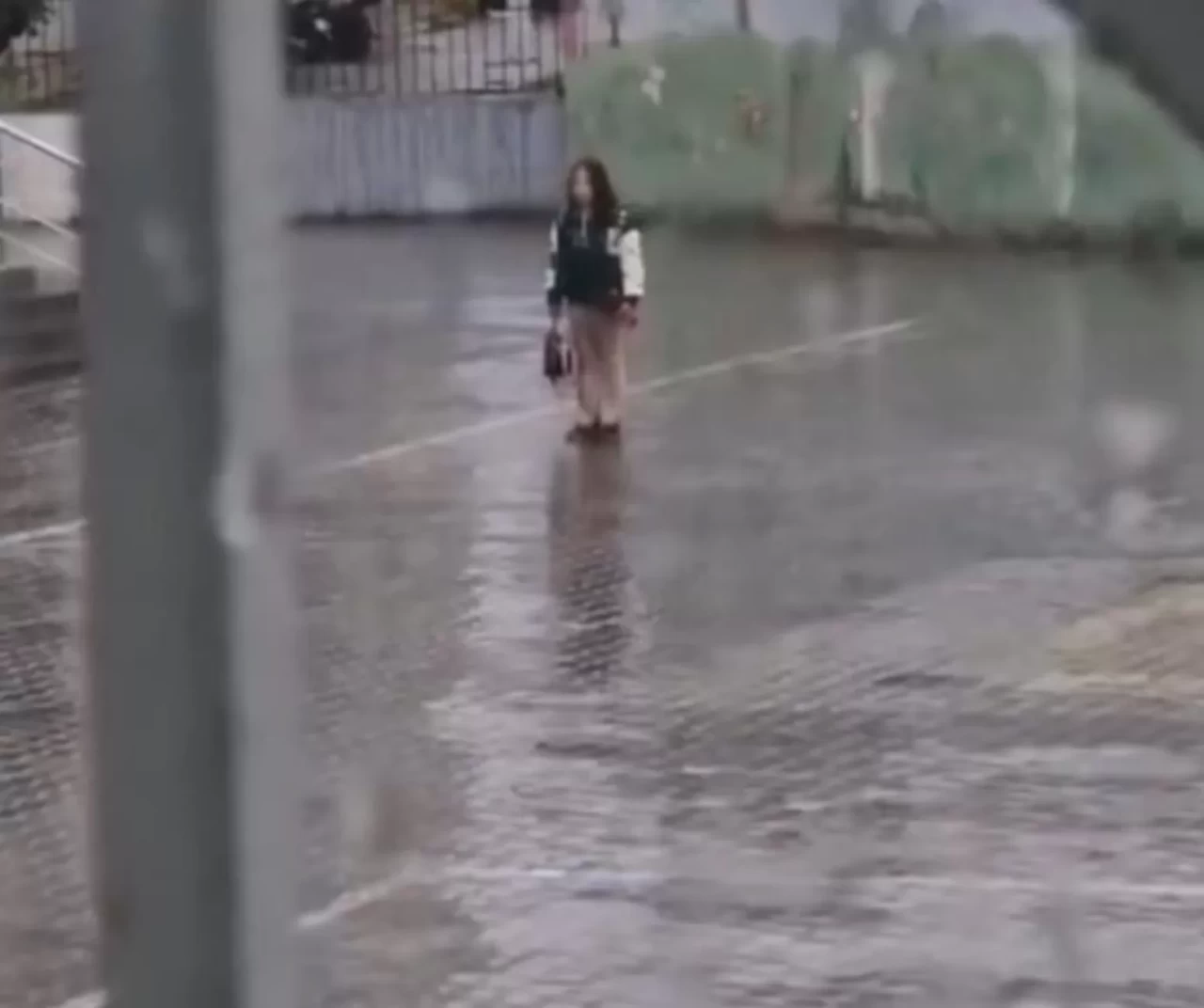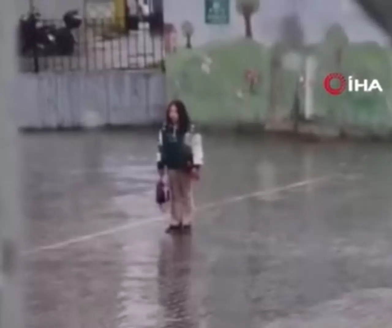 Kentte etkili olan yağmur nedeniyle, marş okulun hoparlör sistemi üzerinden tüm sınıflarda aynı anda okutuldu. Bu sırada derse geç kalan bir kız öğrenci, okul bahçesinde yağmurun altında durarak İstiklal Marşı’na eşlik etti.