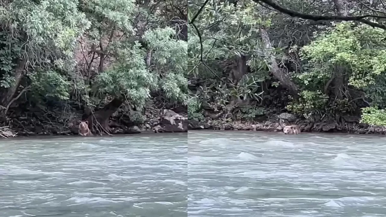Milli Parklar Genel Müdürlüğü sosyal medya hesabından hayvanların eğlenceli anlarını paylaşmaya devam ediyor. Kameralara yansıyan bu boz ayısı nehri geçmeye çalışırken görüntülendi.