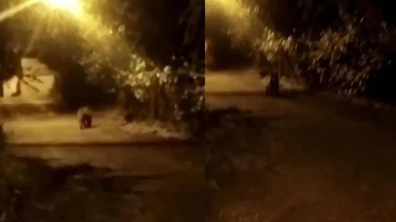 Karabük'te bir sürücü, Öğlebeli Mahallesi'ndeki mezarlığın yanında bir ayı görüntüledi. Cep telefonuyla kaydedilen anlarda, ayının bir süre sonra mahalle içinde koşarak kaybolduğu görüldü.