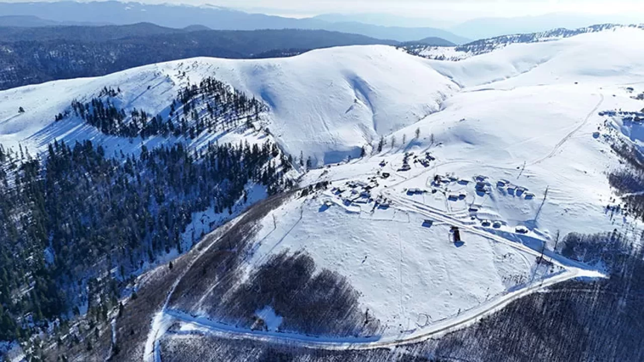 Zirvedeki karla kaplı yayla evlerinin de yer aldığı görüntüler, belediyenin sosyal medya hesaplarında paylaşıldı.