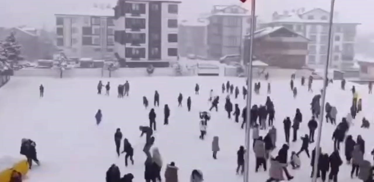 Gerede Seyit Mithat Dayıoğlu Ortaokulu'nda ders işleyen öğrenciler, beklemedikleri bir anda okul müdürünün sürpriz anonsunu duydu. Okulun anons mikrofonunu eline alan okul müdürü İsmail Doğangün, "İyi dersler çocuklar. Camdan dışarıya bakın bakalım. Çok güzel kar yağıyor değil mi? Çıkartayım mı sizi dışarıya kar topu oynamaya? Ne dersiniz?" diye sordu. Tüm okuldan 'evet' çığlıkları yükseldi. Dışarıya çıkan öğrenciler kar topu oynayarak, kar yağışının tadını çıkarttı.