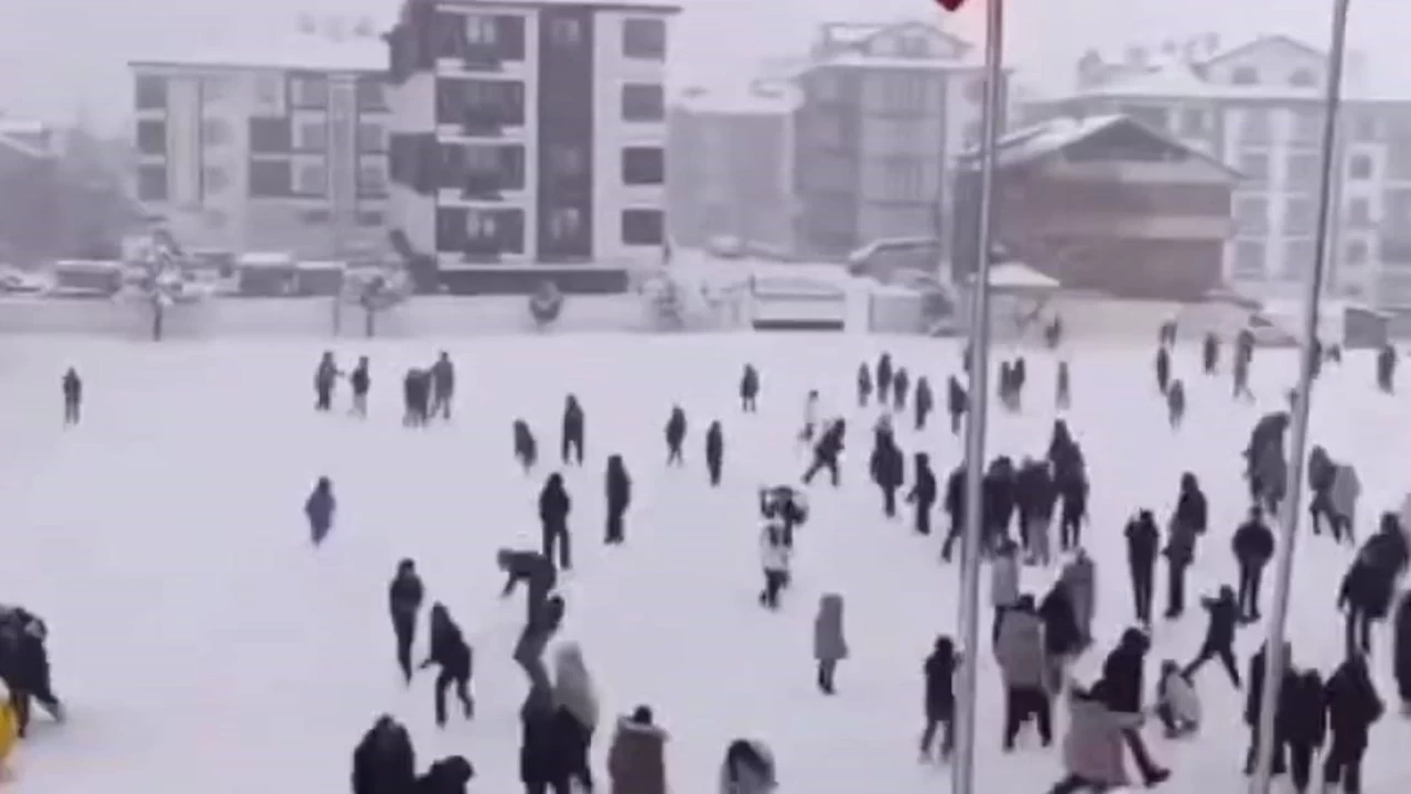Bolu Gerede Seyit Mithat Dayıoğlu Ortaokulu'nda ders işleyen öğrenciler okul müdürünün sürpriz anonsuyla kar topu oynamaya çıktı. Tüm okulun dışarıya çıktığı eğlenceli anlar ise cep telefonu kamerasıyla kaydedildi.