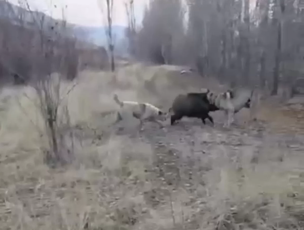 Görüntülerde köpeklerin yaban domuzunu bir süre kovaladığı ve zaman zaman saldırmaya çalıştığı anlar yer aldı. Kısa süreli kovalamacanın ardından yaban domuzu, köpekleri atlatmayı başararak bölgeden uzaklaştı.