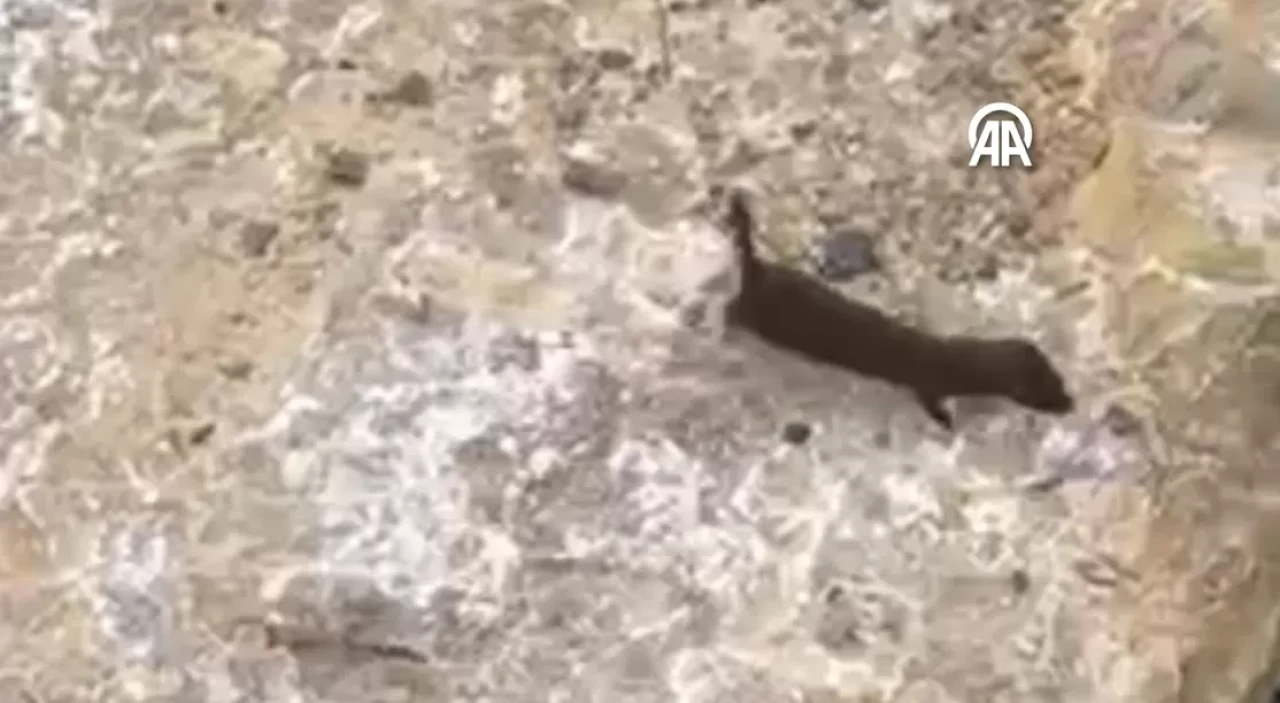 Nadir rastlanan bu anlar, çevrede bulunan vatandaş tarafından cep telefonu kamerasıyla kayda alındı.