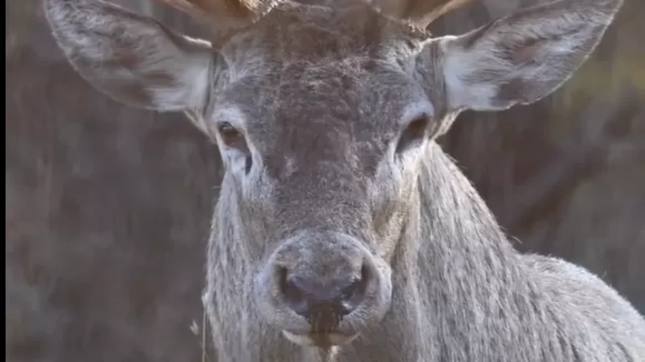 Doğal yaşamdan renkli bir anın yansıtıldığı görüntüde, bir geyik kameraya doğru uzun uzun bakıyor. İlk başta sevimli ve sakin tavırlarıyla dikkat çeken geyik, ardından beklenmedik şekilde ses çıkararak izleyenleri şaşkına çevirdi.