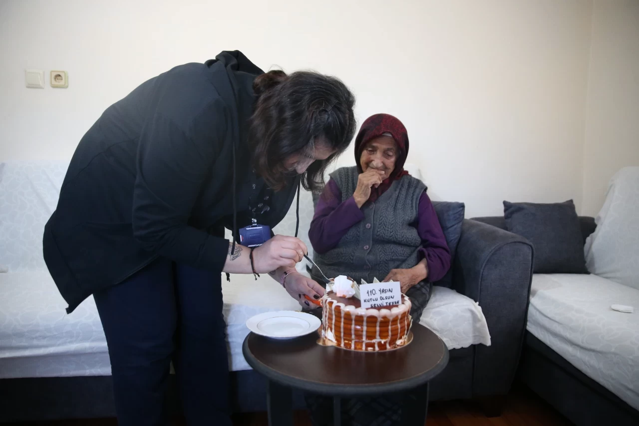 Evde Sağlık Hizmetleri ekipleri, rutin kontrollerini yapmak için ziyaret ettikleri Selvi Nine’ye hoş bir sürpriz hazırladı. Üzerinde “110 yaşın kutlu olsun Selvi teyze” yazılı bir pasta ile doğum gününü kutlayan sağlık çalışanları, yaşlı kadını mutlu etti.