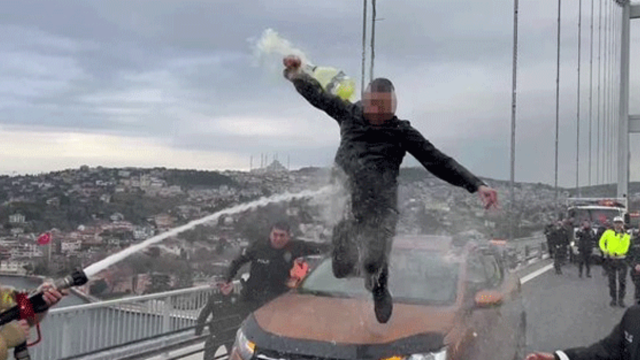 15 Temmuz Şehitler Köprüsünde Anadolu Yakasından Avrupa Yakasına geçiş yönünde seyreden bir araç şoförü, köprünün ortasında aracını durdurup tavanına çıktı.