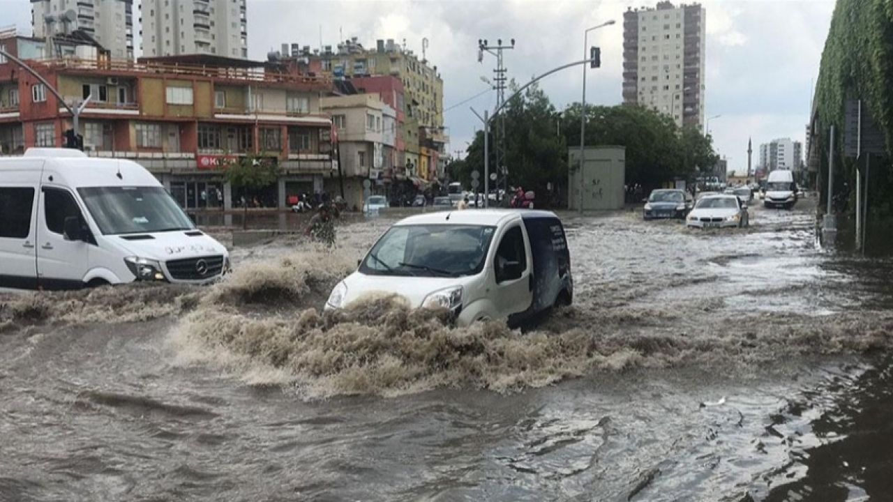 Adana'da yaklaşık yarım saat süren şiddetli yağış nedeniyle bazı cadde ve sokaklarda su baskını yaşandı.