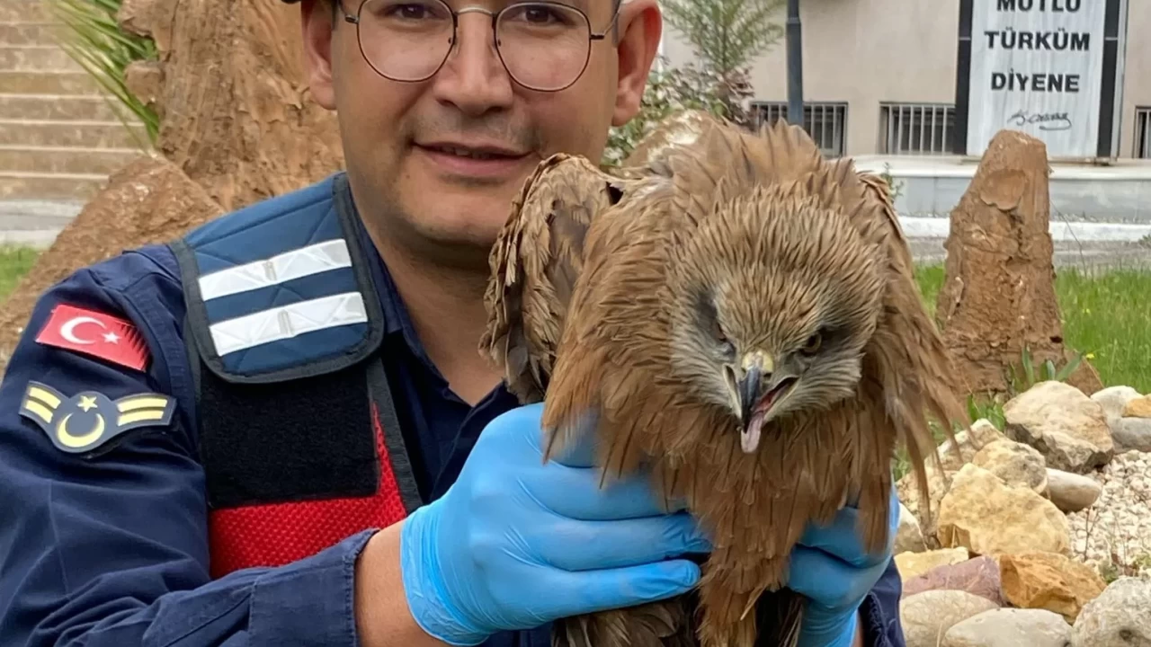 Valilikten yapılan açıklamaya göre, İl Jandarma Komutanlığı ekipleri, ilçe kırsalında devriye sırasında yaralı şahini gördü.