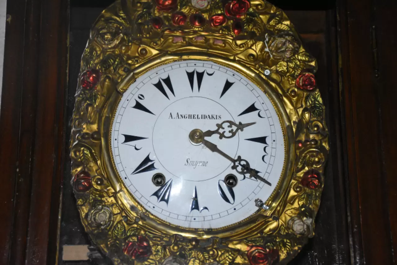 "Saatin dış korumasının marangoz işçiliğini de Abdülhamit Han'ın kendisinin yaptığını bilmekteyiz. İçerisindeki kurmalı saatin üzerinde Rum usta A. Anghelidakis'in ismi yazıyor. Bu ustamız daha önce bir dönem Afyonkarahisar'da ikamet ediyor. Daha sonra İzmir'e göç ediyor. Saatin alt kısmında da Smyrna yazıyor. İzmir'de yapılan bu saatin büyük kadranı perde ve çiçek motifleriyle süslenmiştir. Ustamız Hristiyan olmasına rağmen perde motiflerinde kırmızı renk ve ay yıldız motifleri kullanmıştır. Arka tarafında da beşer kilogramlık iki demir topuz var. Saatimiz orijinal bir şekilde 140 yıldır çalışıyor."