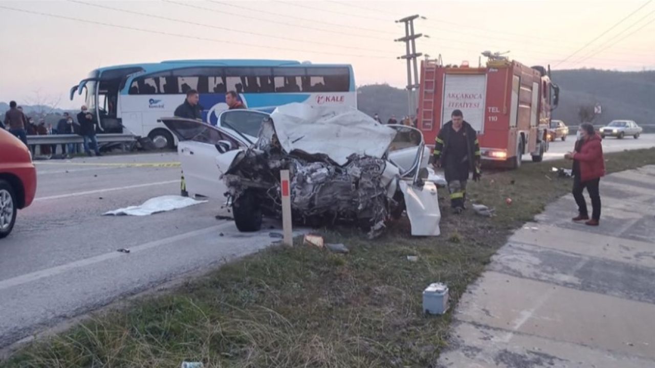 Alınan bilgiye göre, İstanbul'dan Zonguldak'a giden Ahmet Y. idaresindeki Kamil Koç firmasına ait yolcu otobüsü ile Zonguldak'tan Sakarya'ya giden Fuat Karagöz'ün kullandığı 14 AAY 823 plakalı otomobil, Akçakoca-Karasu bağlantı yolu Edilli mevkisinde çarpıştı.