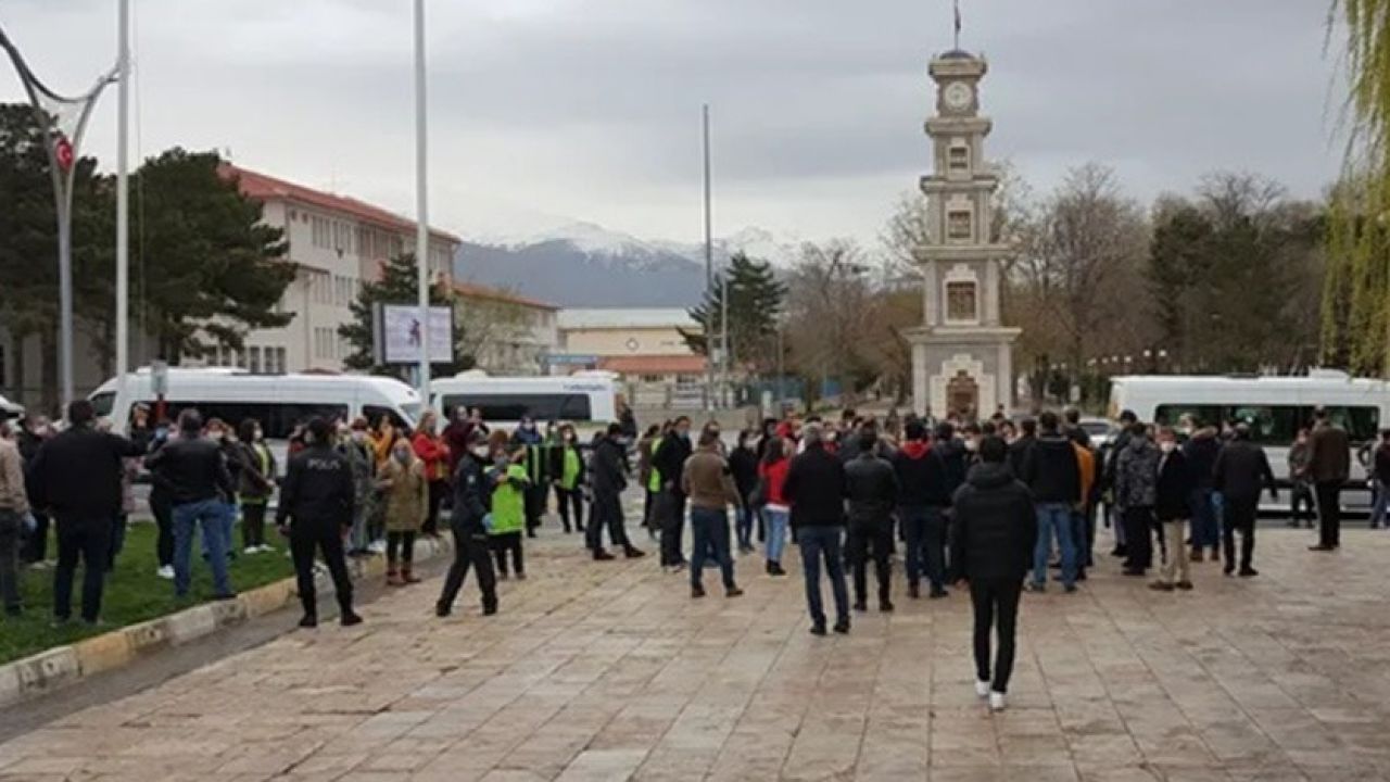 Kalabalık servislere ise sosyal mesafe kurallarına riayet ederek binip valilik önünden ayrıldı.