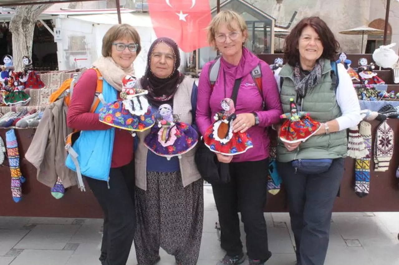 Turizm sezonunun yoğun geçtiğini belirten Ayşe Aplak, gününün nasıl geçtiğini şöyle anlatıyor:"Sabah saat 9’da sergiye geliyoruz. Turistler geliyor, bebekleri alıyor. Onlar gidince arkadaşlarla gözleme yapıp satıyoruz. Ardından ev işleriyle ilgileniyoruz."