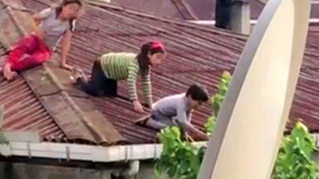 Esenyurt'ta kaydedilen görüntülerde annesi pazara giden çocukların 3 katlı binanın çatısında dut topladığı görüldü. Vatandaşların büyük korku yaşadığı anlarda herhangi bir kaza yaşanmaması sevindirdi.