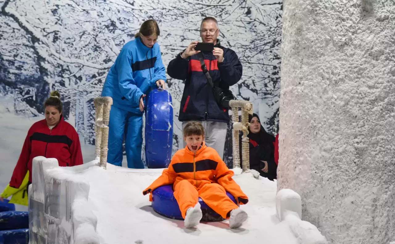 Ailesiyle kar odasına gelen Fatma Ülkü Aslan, "Antalya çok sıcak. Dışarıda lavın içindeymişiz gibi ama burada hava çok serin. Montla geziyoruz ve sanki kış mevsimindeyiz gibi. Denize girmekten daha ferah hissettiriyor kar odası" dedi. Kar odasında eğlenceli vakit geçirdiğini belirten Yağmur Aslan ise kendisini kayak merkezinde gibi hissettiğini, sıcak havadan kar odasında korunduklarını kaydetti.