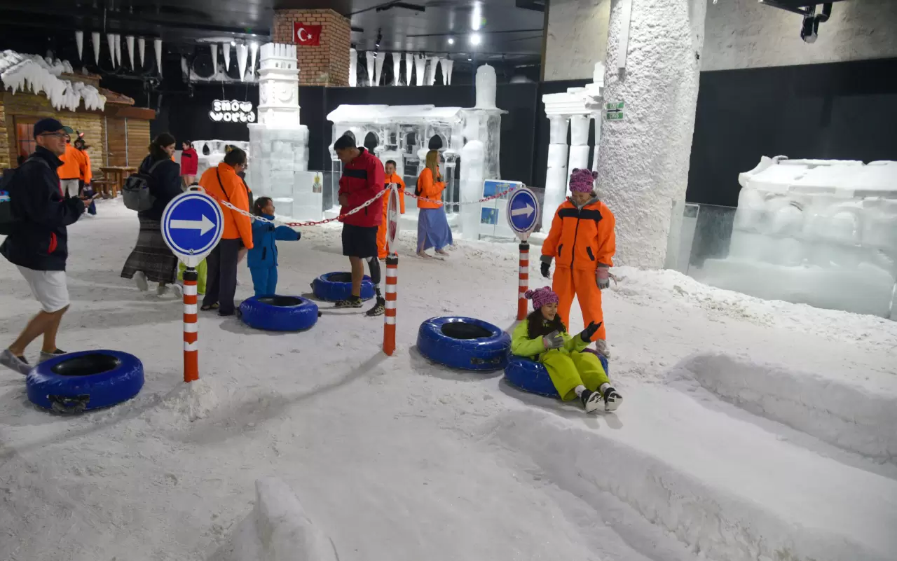 İçerideki hava sıcaklığı eksi 2 derece olan odada, yapay kar ve kış temalı ambiyans oluşturuluyor. Dışarısıyla 42 derecelik sıcaklık farkı bulunan kar odası, ziyaretçilere nefes aldırıyor. Özellikle çocuklu ailelerin ilgi gösterdiği kar odası, dışarıdaki kavurucu sıcaklıktan kaçış noktası haline geldi.