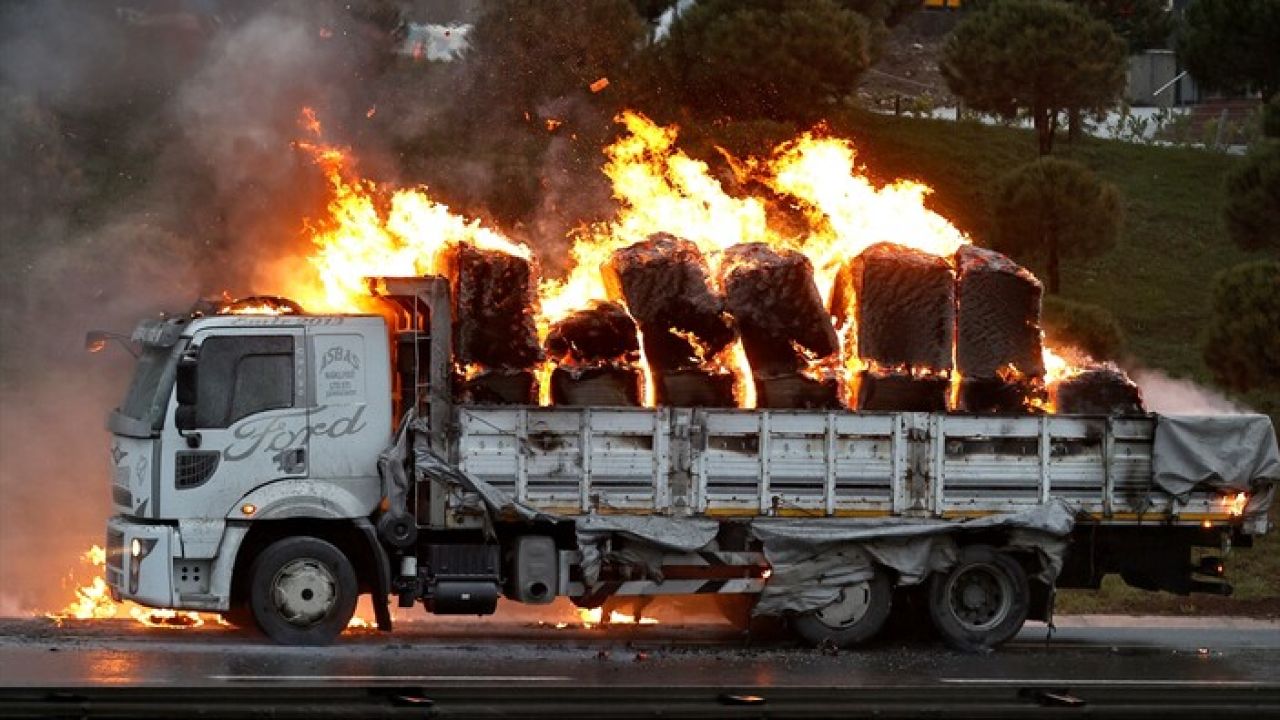 Yangın, kamyonun kasasında çıktı ve hızla büyüdü.