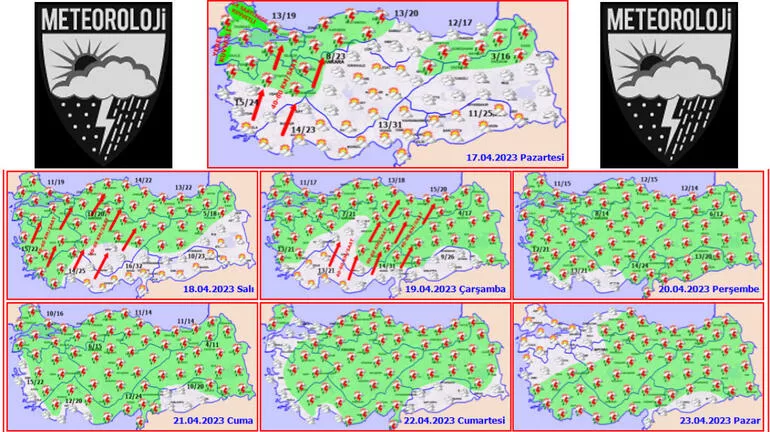 Meteoroloji Genel Müdürlüğü'nin sayfasında yer alan haftalık hava tahmin raporuna göre bayramın ilk günü 21 Nisan Cuma günü tüm Türkiye'de sağanak yağış etkili olacak.