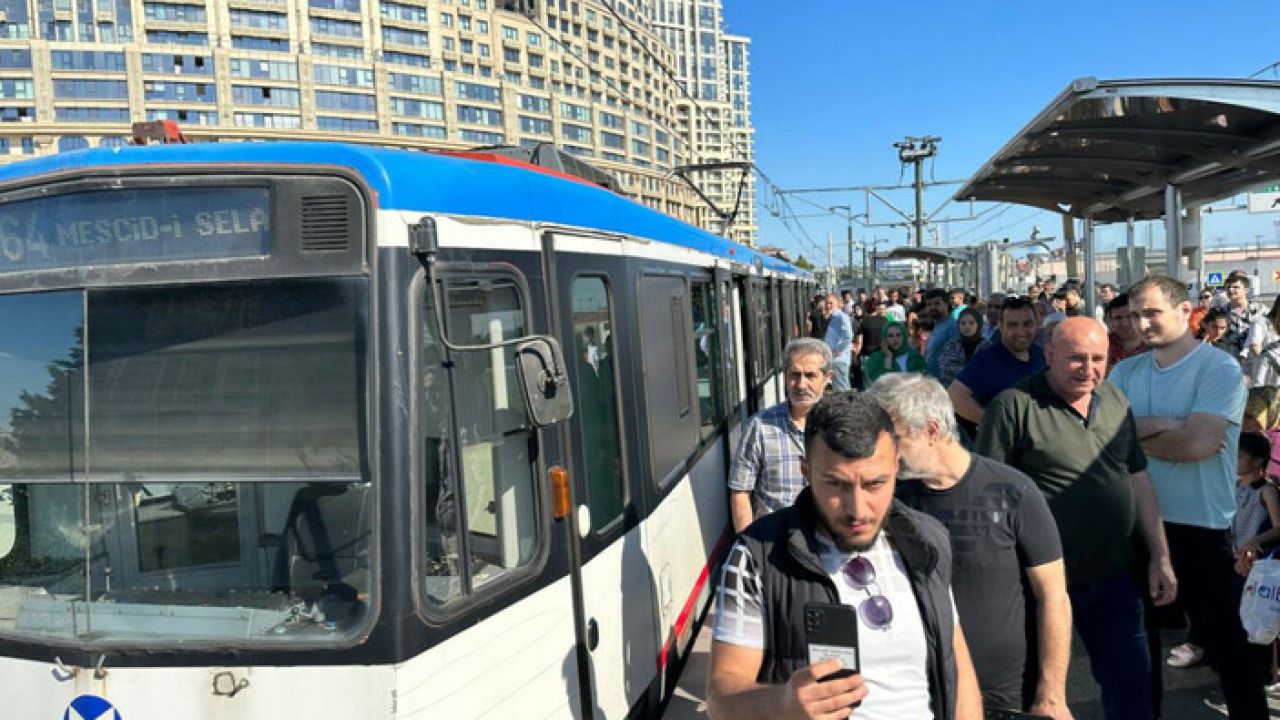 T4 Tramvay Hattı'nda Mescid-i Selam durağına yanaşan tramvay, arızalandı.