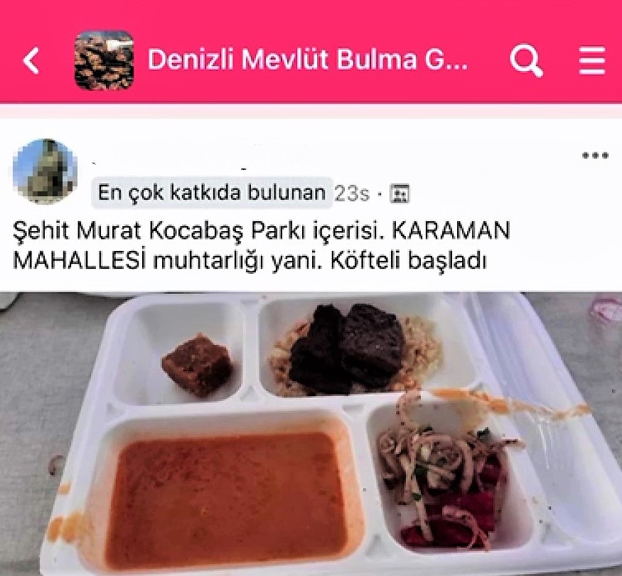 Denizli'de sosyal medya üzerinde kurulan 'Denizli Mevlüt Bulma" Grubu sayesinde özellikle gençler nerede mevlüt var kolay yoldan tespit ediyor. Yapılan paylaşımlarla nerede yemekli hayrın olduğu paylaşılıyor. Hatta grup üyelerinin adres bulmakta zorlanmaması için paylaşımı yapan üyeler haritalar üzerinden konum paylaşıyor. Yemeği yiyen üyeler diğer üyelerin de karınlarını doyurabilmesi için menü paylaşımında da bulunuyor. Birden fazla yemekli hayır var ise üyeler köfteli ya da tavuklu olan hayır arasında seçim yaparak istediğine gidiyor. Denizli'nin her bölgesinde yayılı olan grup üyeleri yemek hazırlıklarının başladığını tespit ederse hemen diğer grup üyelerine fotoğraflı olarak duyuru yapıyor. Karnı doyanlar da hayır yapanlar da bu grubu yararlı bularak her geçen gün bu platformun büyümesini istiyor.