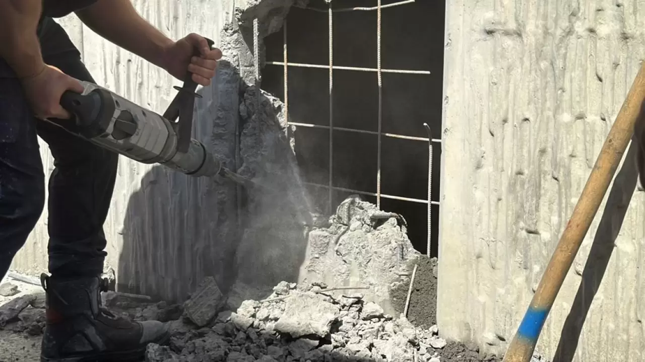 Kısa sürede olay yerine gelen ekipler, ilk olarak sesin geldiği yerdeki duvarın bir bölümünü kırdı.