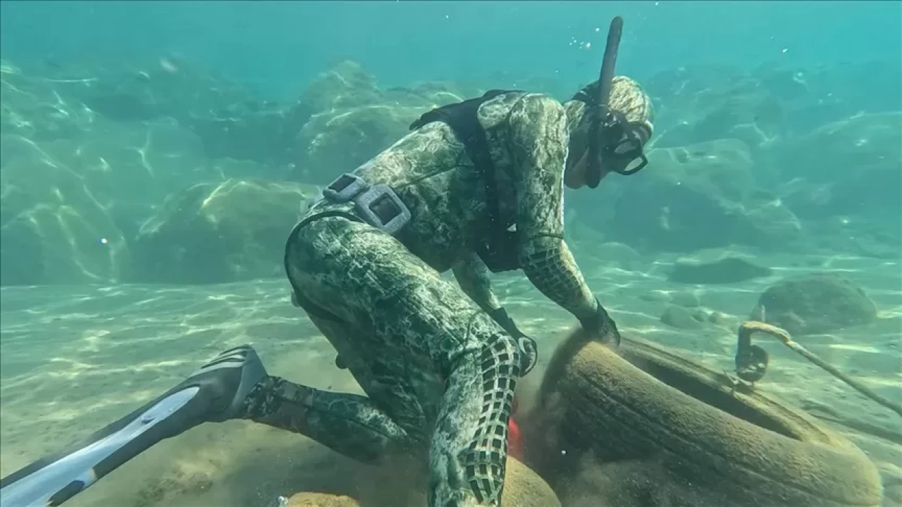 Belediye personelinden oluşan gönüllü dalış ekibince deniz dibinden 161 kilogram atık toplandı.