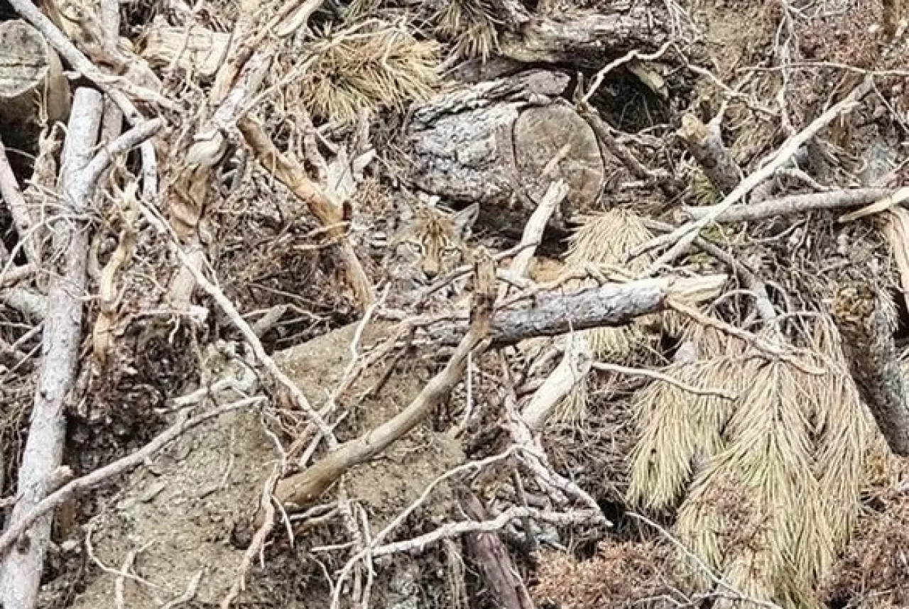 Bolu’nun Göynük ilçesinde, ormanlık alanda yapılan kesim sonrası yığılan ağaç dalları arasında gizlenen vaşak ve yavruları, orman muhafaza görevlileri tarafından görüntülendi. Doğal ortamlarında fark edilmesi oldukça güç olan vaşak ailesi, Göynük Orman İşletme Müdürlüğü ekipleri tarafından koruma altına alındı.
